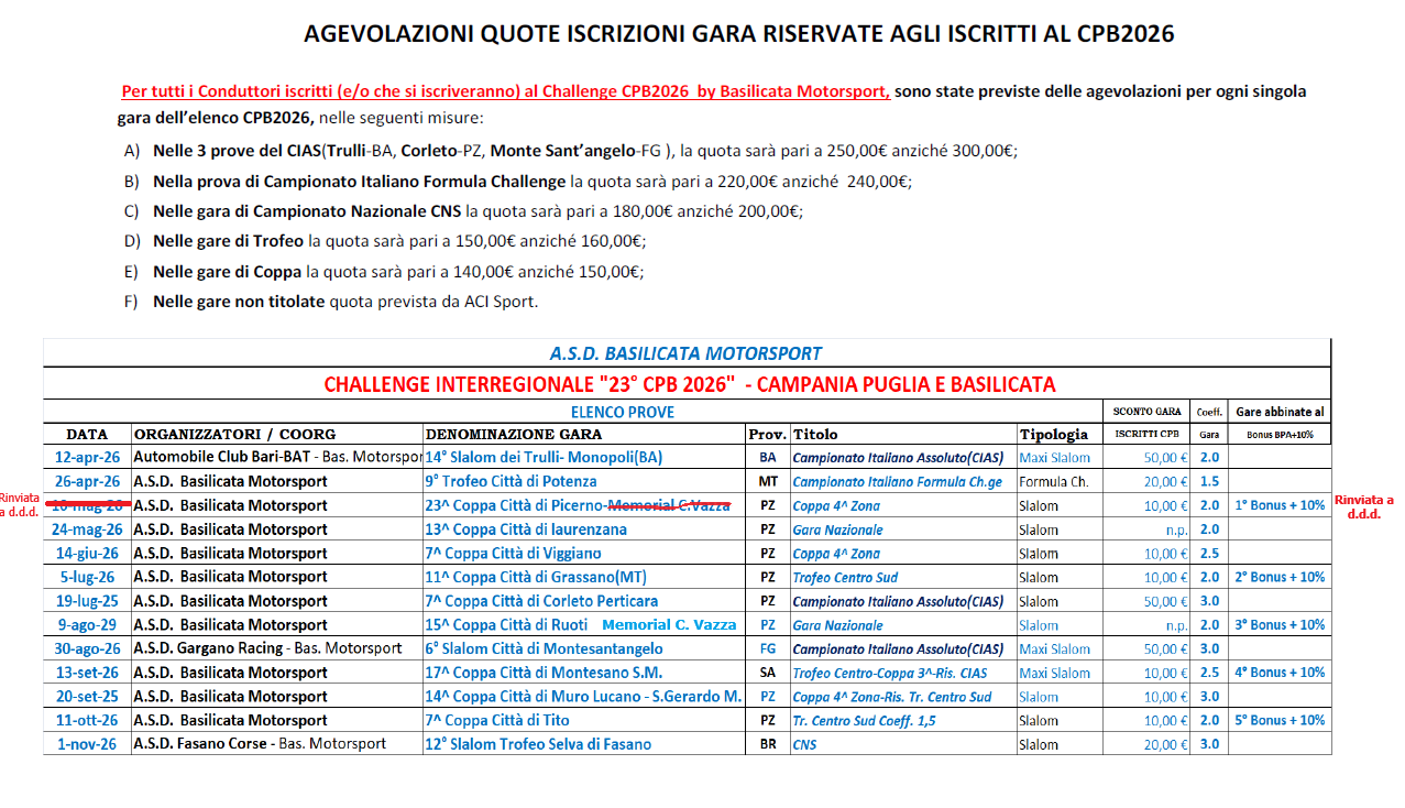 Rimane in vigore la procedura tramite accesso al portale ACISport di preiscrizione online alle gare; la preiscrizione viene resa definitiva dopo controllo dei dati da parte degli organizzatori.